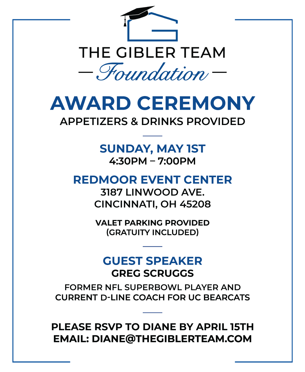 Home » 2022 Scholarship Recipients 2022 Scholarship Recipients Congratulations! You’ve been selected to receive a scholarship from The Gibler Team Foundation! Gibler Team Foundation Award Ceremony Details